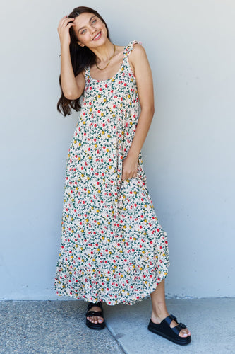 Doublju In The Garden Ruffle Floral Maxi Dress in Natural Rose