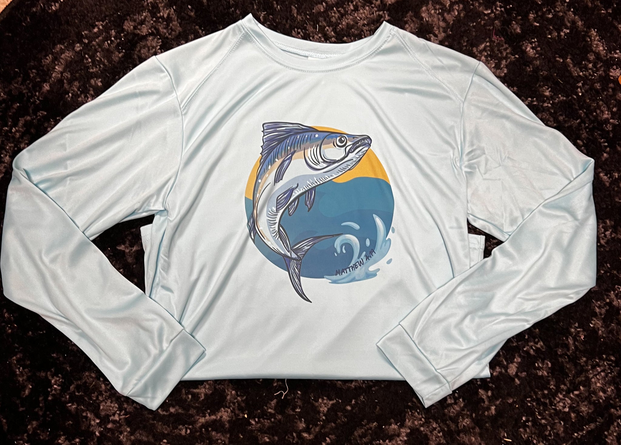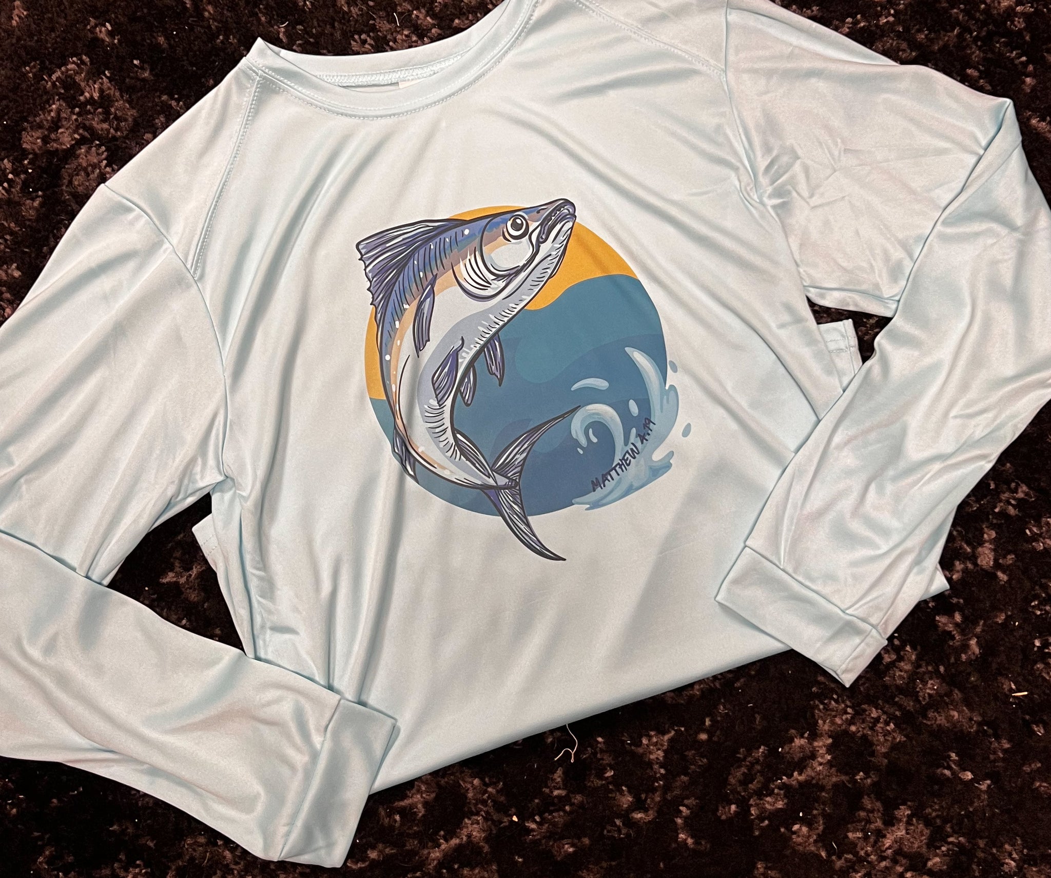 Dri-fit UPF 50 material; long sleeve; aqua blue color; true to size