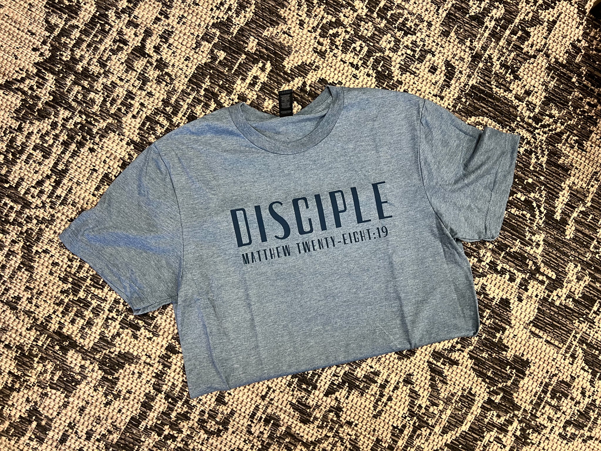 This heather indigo blue tee boldy declares that you are a disciple of Christ!