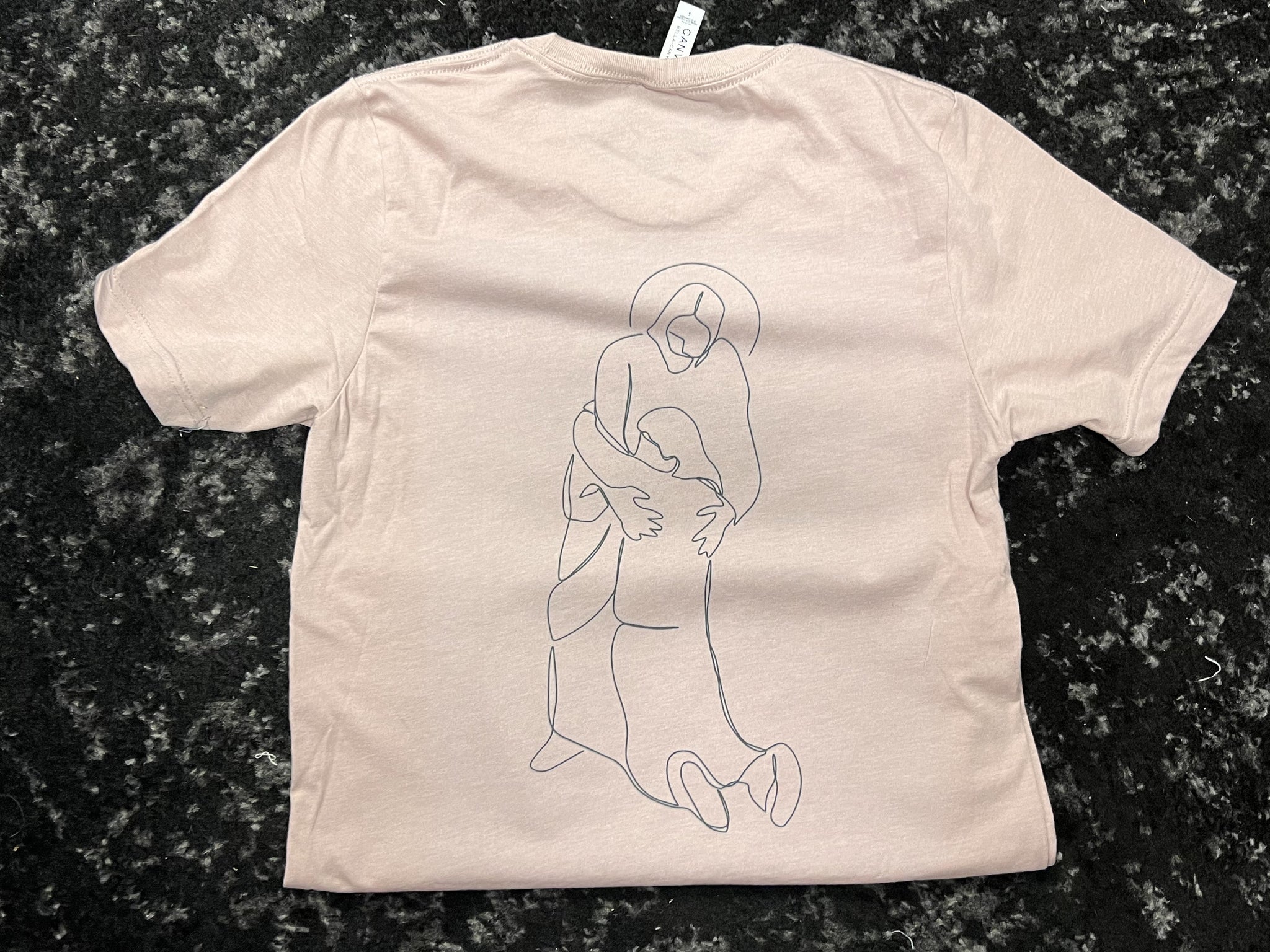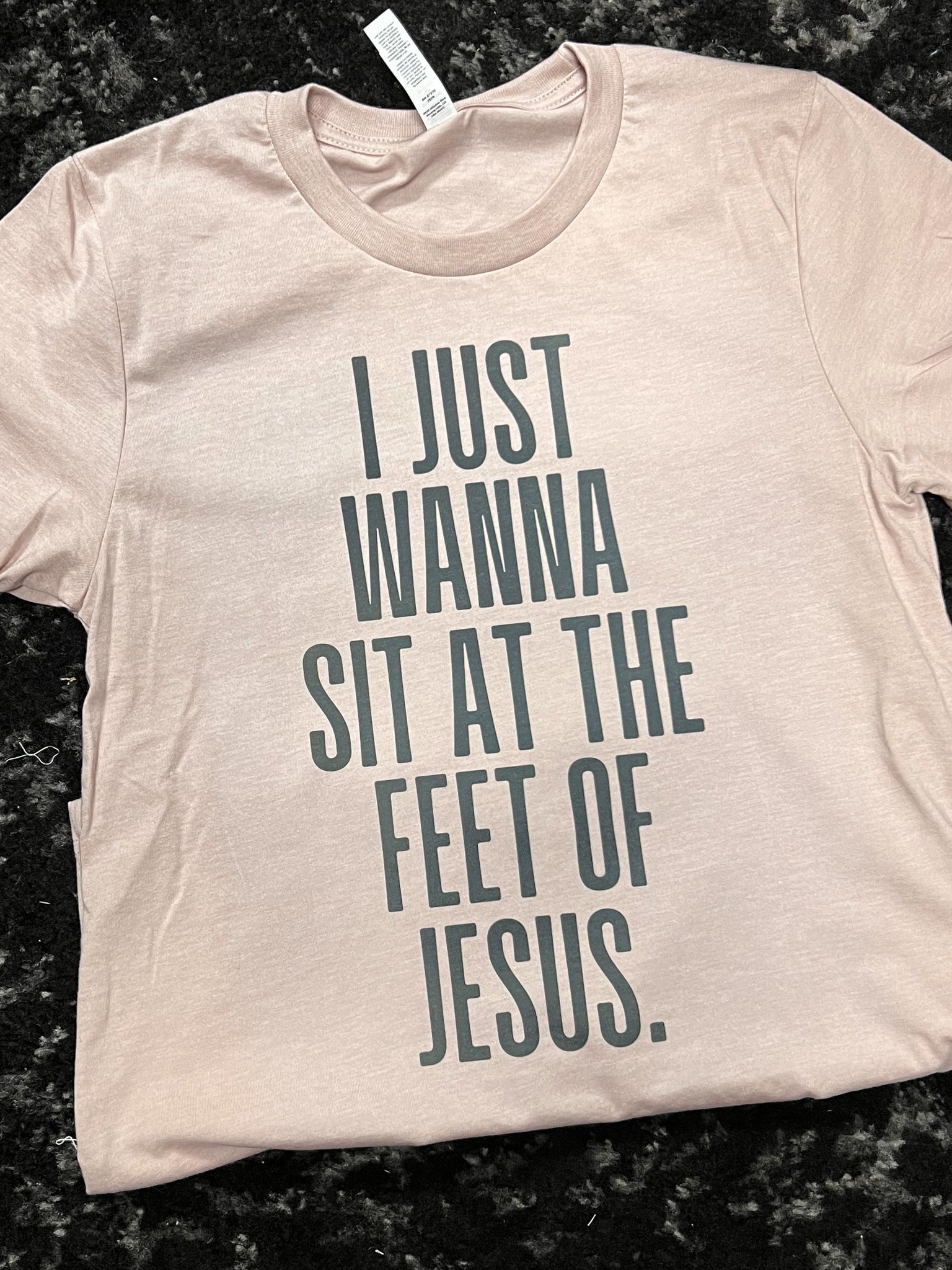 I just wanna sit at the feet of Jesus. Beautiful words printed on the front and a beautiful picture of that very thing simply printed on the back.