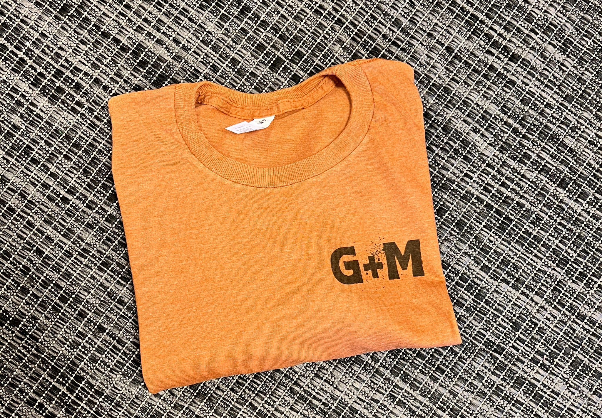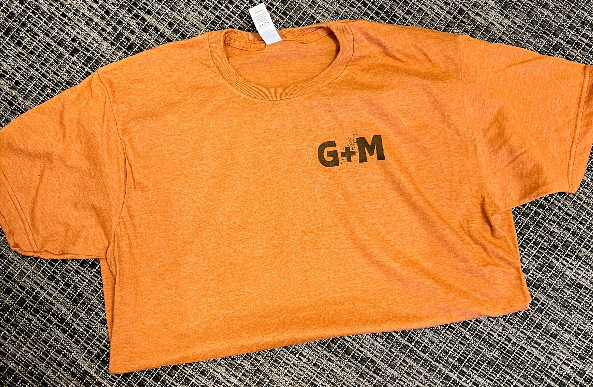Unisex fit; true to size; 50/50 blend; rust colored tee with black front and back print.