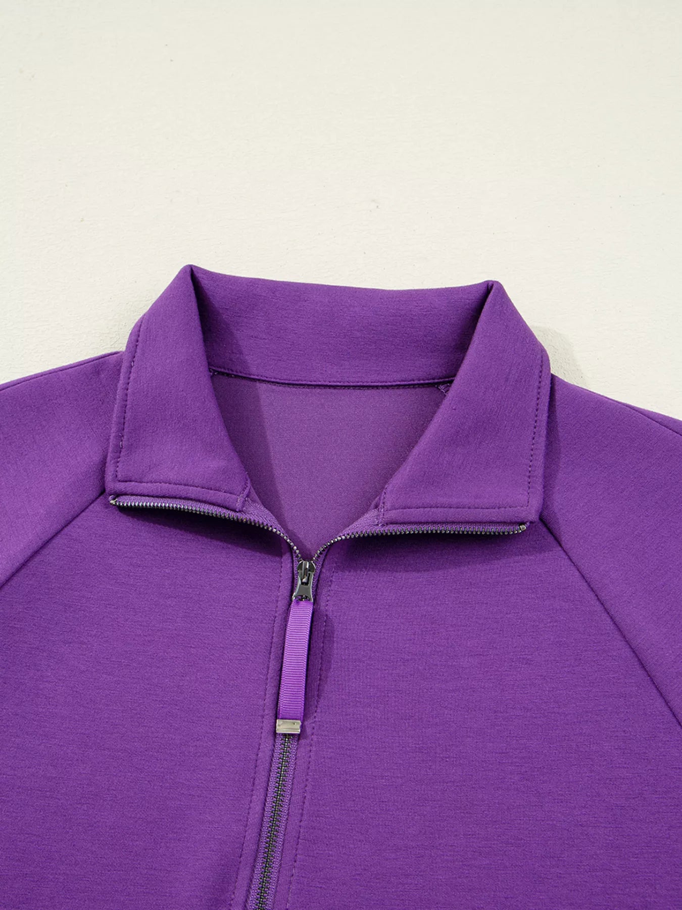 Half Zip Long Sleeve Top and Mini Skirt 2pcs Outfit