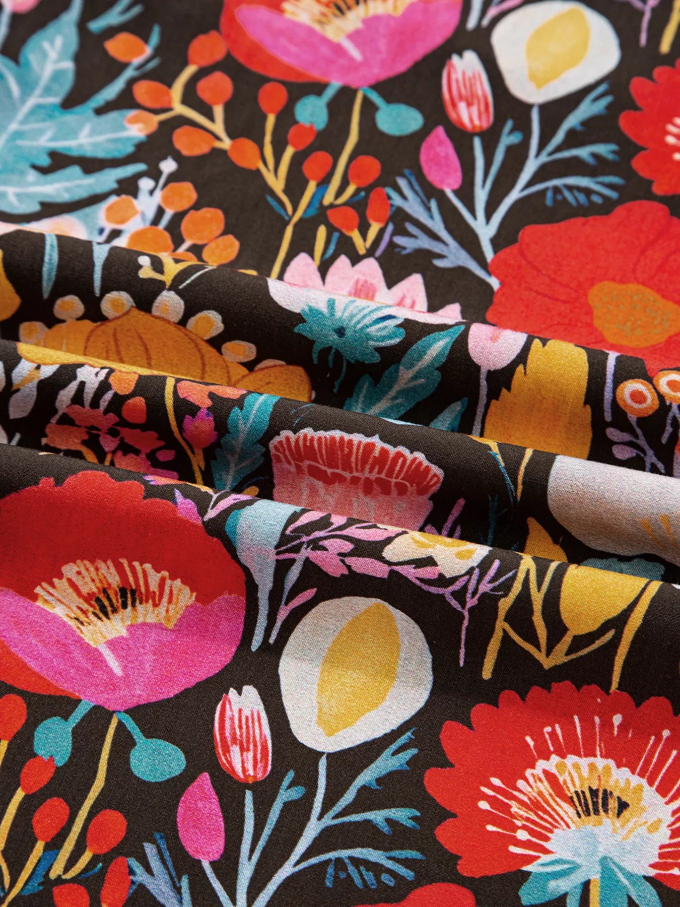 Floral 3/4 Puff Sleeve Tied Neck Blouse