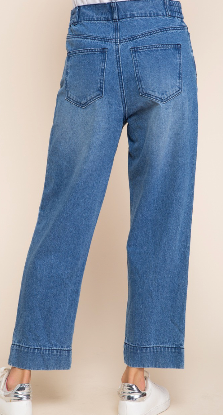 WEIGHT : MEDIUM FIT : RELAXED DETAIL : BUTTON & ZIPPER CLOSURE FRONT, ELASTIC SIDE WAISTBAND, FRONT & HIP POCKETED, STRAIGHT HEMLINE